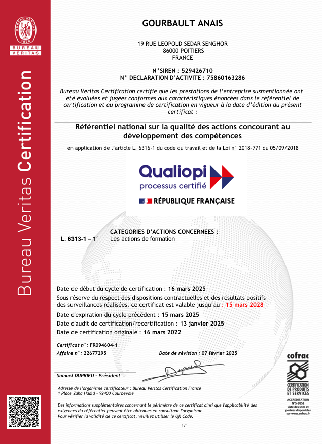 La certification qualité a été délivrée au titre de la ou des catégories d’actions suivantes: